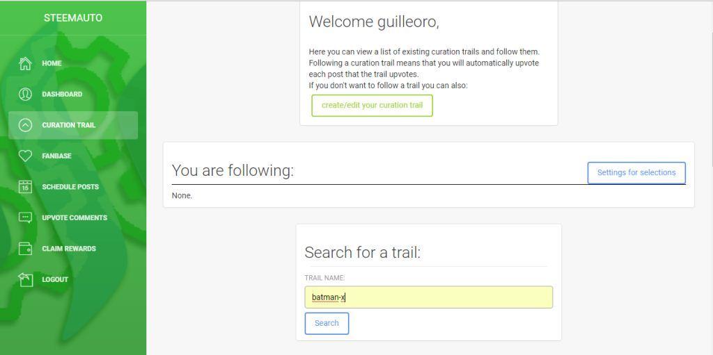 En steemauto se te mostrarán varias opciones. Como buscas unirte al trail, das click en la opción "Curation Trail".