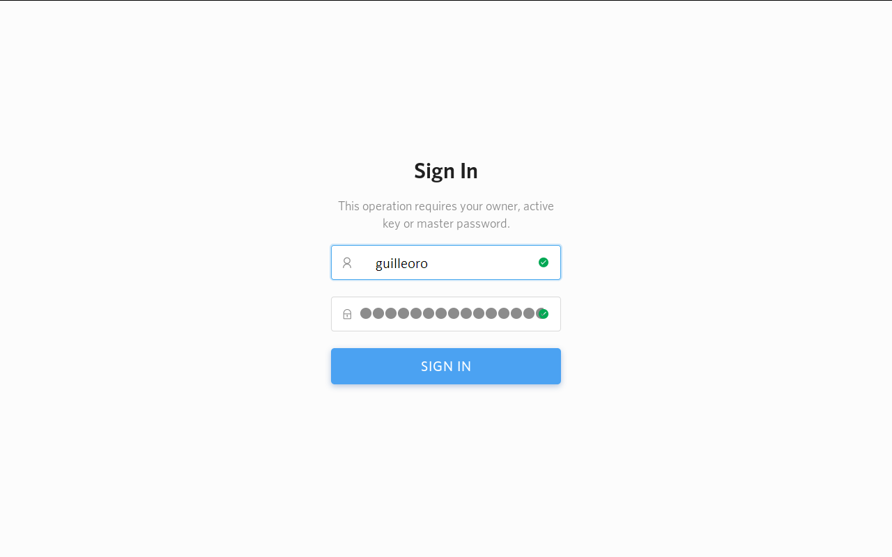 Luego, introduce tu usuario y el token o clave principal.