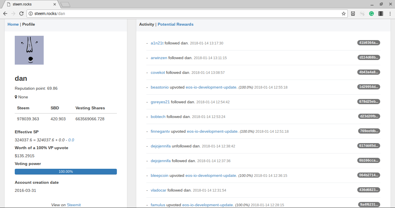 Steem.rocks, es sencillamente efectiva, no necesita muchos colores para hacer tan útil como lo es. Así que ya saben a dónde ir si quieren conocer los detalles financieros y la actividad de su cuenta de Steemit. Steemrocks es una buena opción.