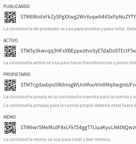 Por su seguridad use siempre la Posting Key, la que está en la primera línea, para postear y votar, guarde su claver OWNER o de propietario para uso exclusivo de operaciones financieras, retirar dinero de la plataforma, comprar steem, etc.