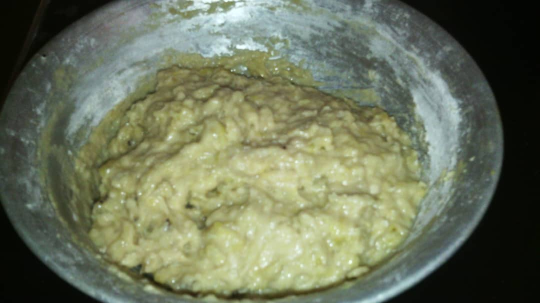 Agrega el puré de plátano a la mezcla hasta conseguir una masa homogénea.