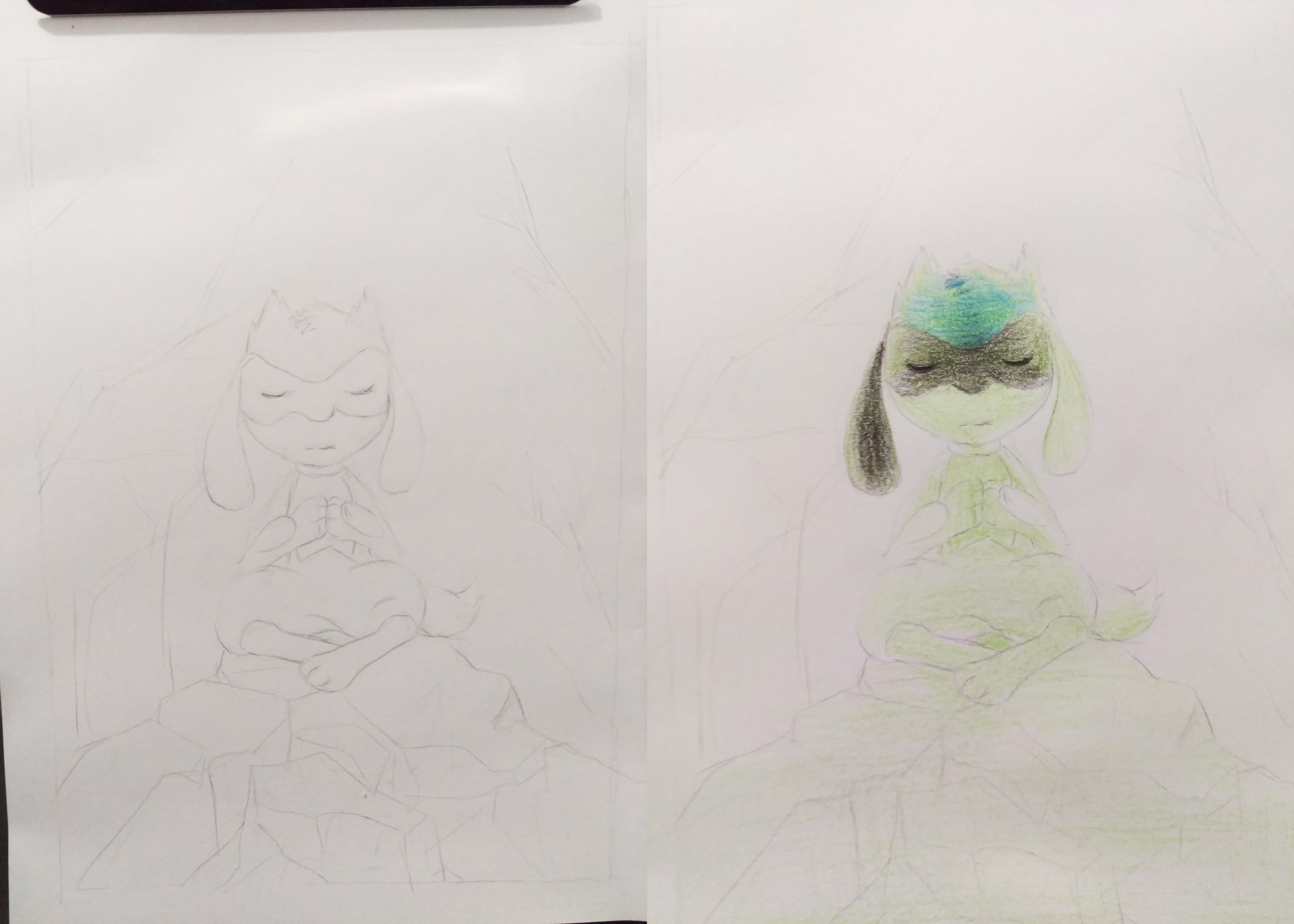 Dibuja Y Gana 1ra Entregabliond (30)in #spanish • 9 years ago Hola comunidad! Les traigo un dibujo para el concurso de dibujo organizado por @loreennaa El pokemon a dibujar se llama Riolu, con una forma interesante, diseñado a partir de un zorro y con colores negros y azules FUENTE Link de la fuente PROCESO DE DIBUJO Comienzo con los bocetos generales con lápiz: del cuerpo y las rocas Paso todo a líneas más delgadas, para comenzar a colorear Coloreo con más intensidad al personaje, para resaltarlo de su contexto RESULTADO MATERIALES Lápiz de grafito 6B, lápices de colores y borrador #cervantes #cervantes-arte #dibujaygana