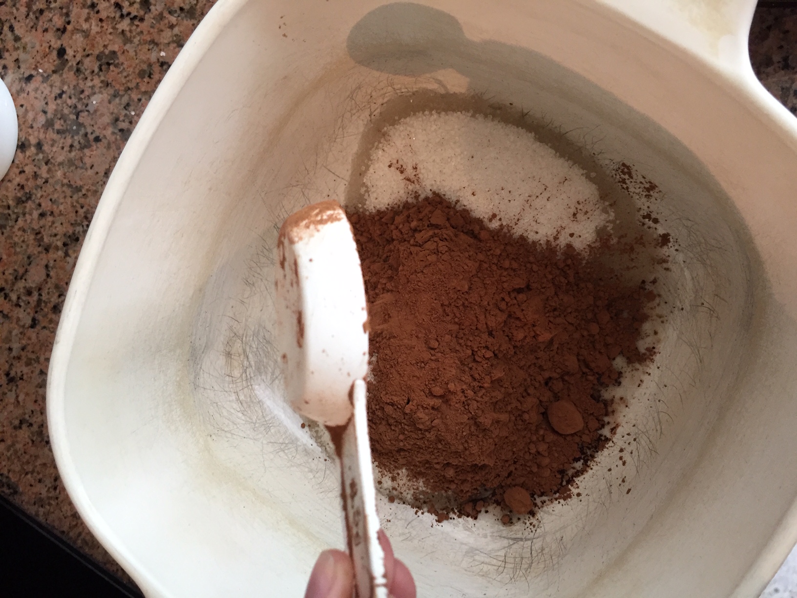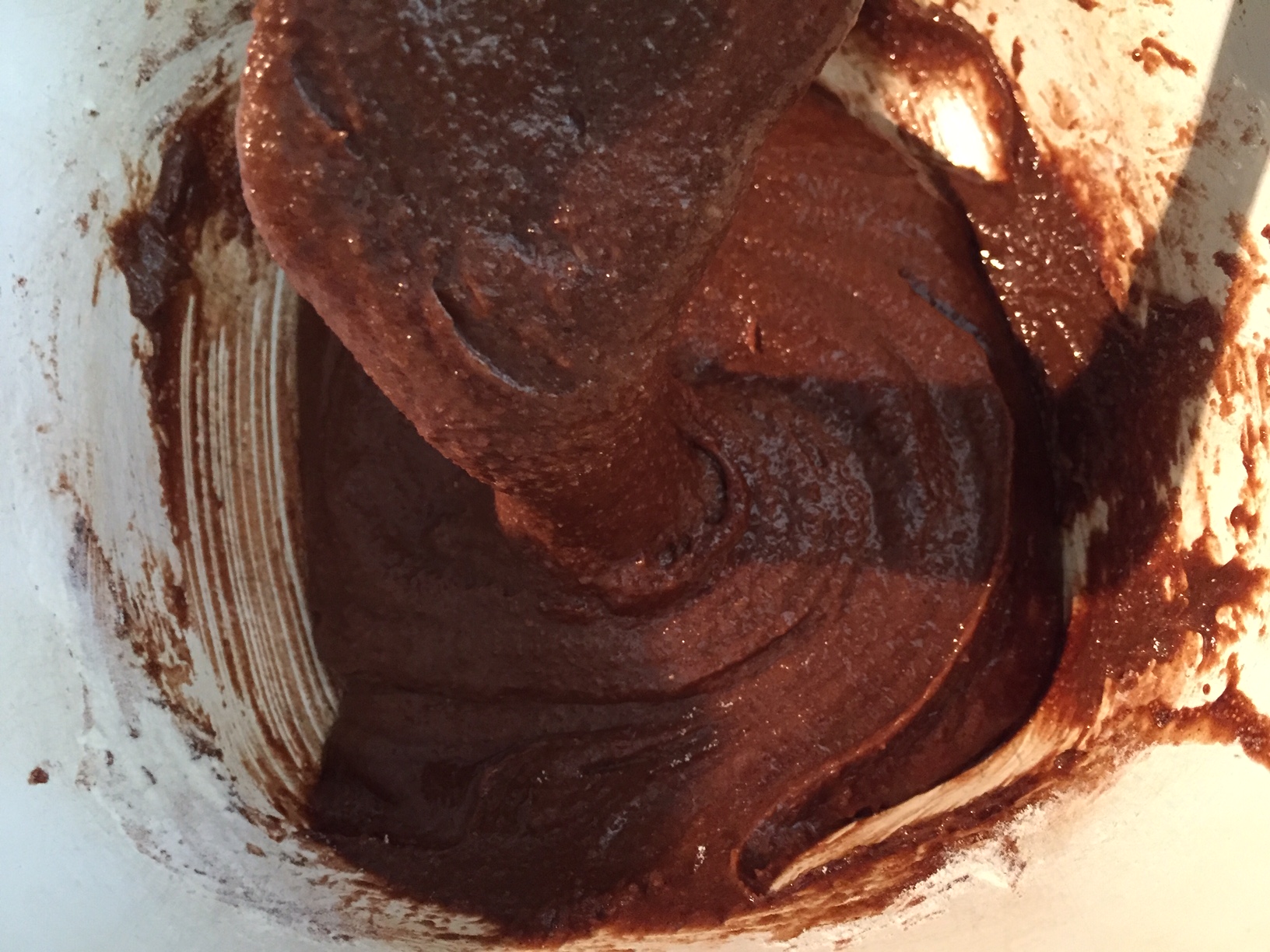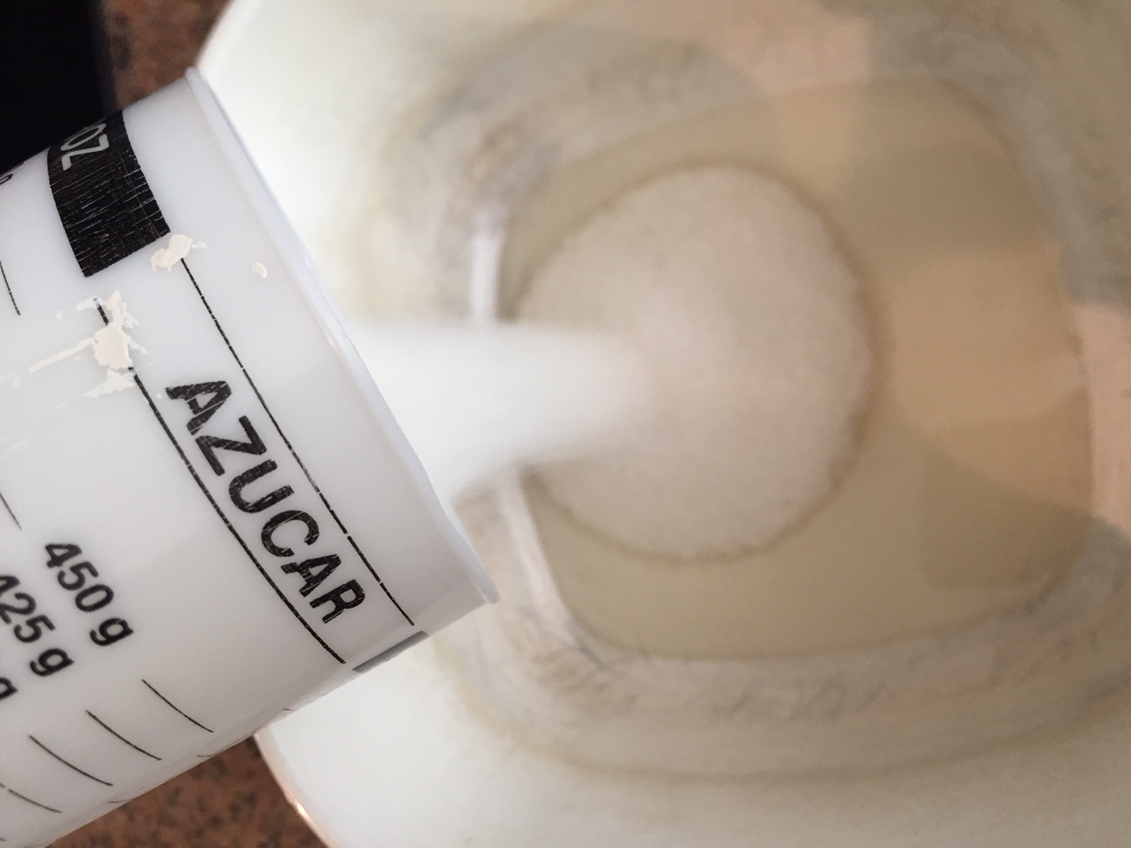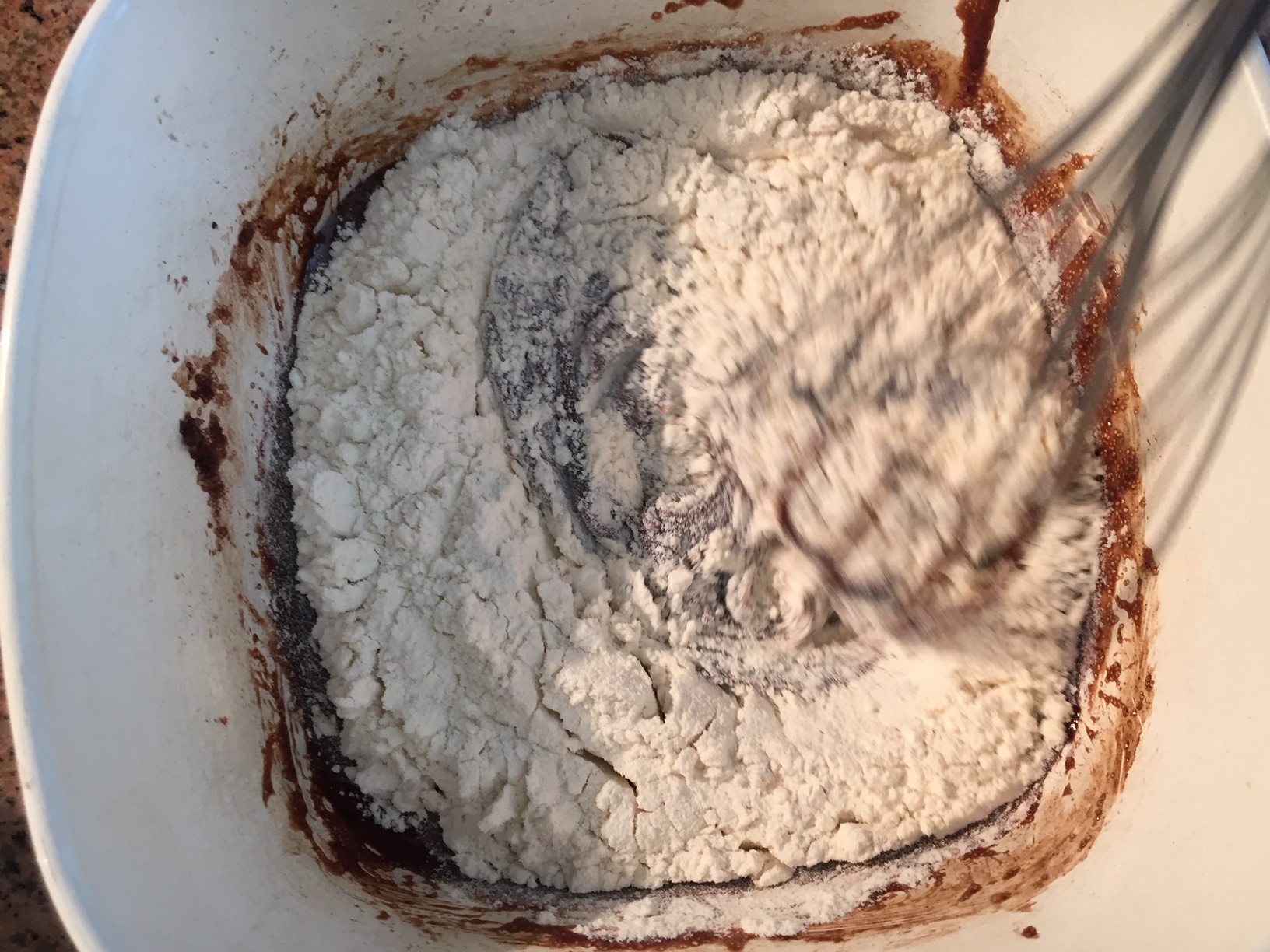 - Ahora añadimos la harina y la cdita de polvo de hornear, mezclamos con una paleta.