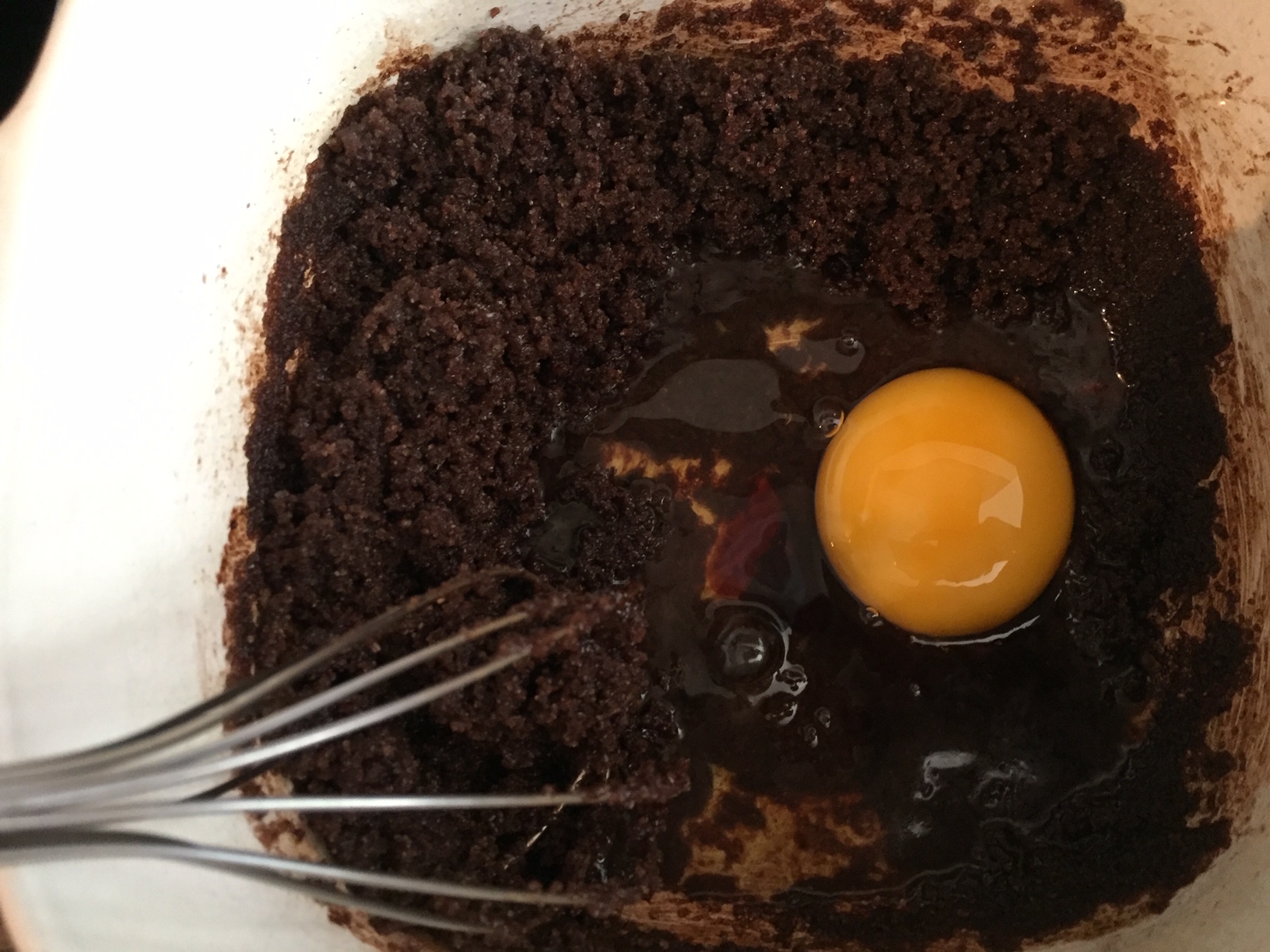 - Mezclamos bien hasta que se integren los ingredientes y colocamos el huevo y la esencia de vainilla, volvemos a mezclar.