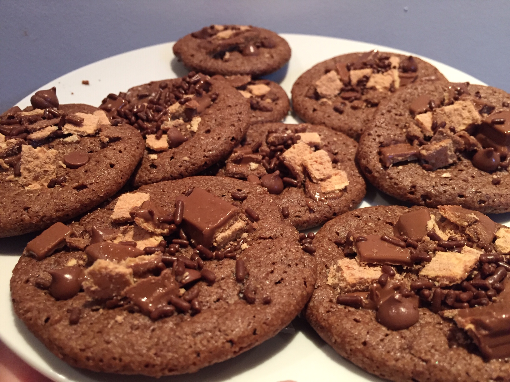 Apenas salgan del horno colocamos las chispas y las gotas, yo añadí un kitkat por que soy así de lambucia jajaja.