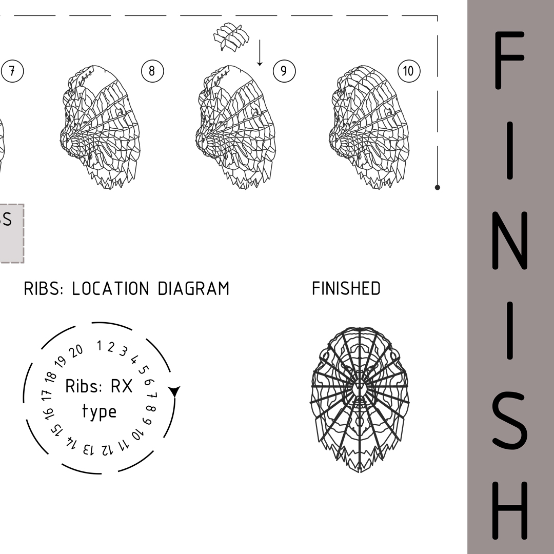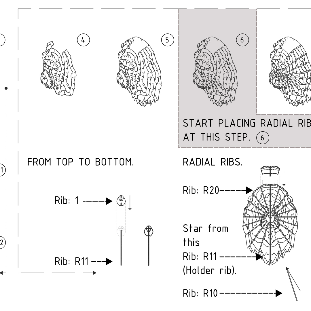 La segunda fase consistió en determinar los grosores que tendrán los perfiles de madera que darían soporte a la vez que darían espacio para insertar la luz en la cabeza.