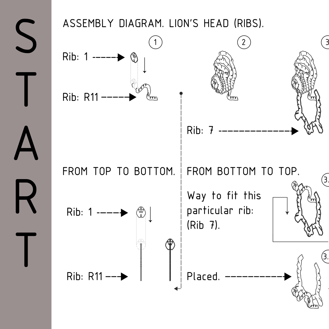 Y finalmente la cuarta fase consistió en dar detalles finos al león para darle un carácter mayor y salga de la abstracción, se añade una melena más frondosa, detalles de orificios en la nariz y ojos, creando orificios en uno o más planos para que estos den profundidad al objeto y desde casi cualquier ángulo se perciba como tal, un león.