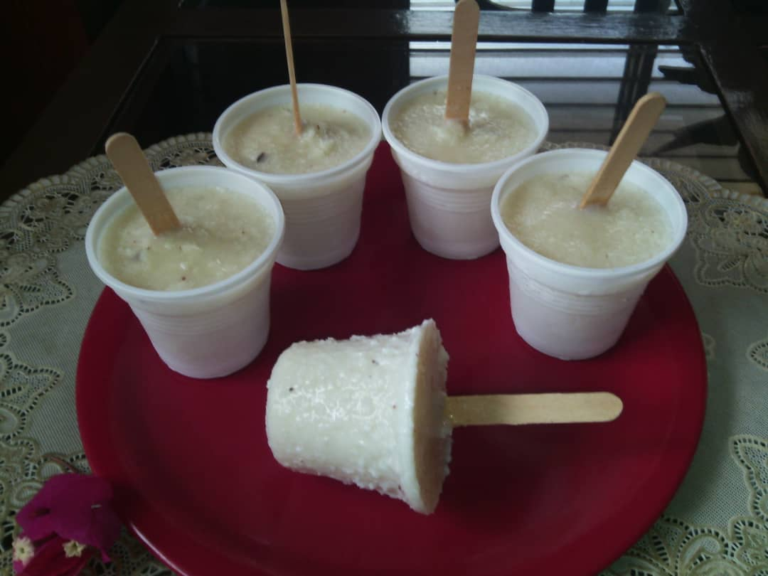 Rápidos, sencillos y con sabor casero son los helados de coco. Mientras hacia los helados, recordé mi infancia, camino a casa siempre compraba mis heladitos de coco, que disfrutaba por su textura en vasos o de paleta.
