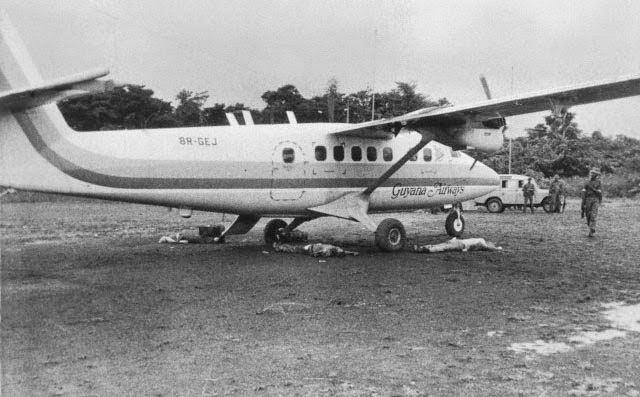 Justo en el momento en el que estamos saliendo de Jonestown hacia la Pista de aterrizaje de Puerto Caituma que está a unos 11 Km del pueblo, vemos como nos sigue un grupo de los fanáticos más leales e incondicionales de Jones. Llegamos al avión comenzamos a embarcar y justo en ese momento aparece, ante mi incrédula y sorprendida mirada, mi padre biológico Larry disparando a mansalva contra todos nosotros, contra la prensa y contra el Congresista quien cae muerto al instante. No logro abordar el avión y tengo que esconderme, el avión termina despegando con apenas 2 reporteros y los pilotos, el resto yace muerto en la pista, entre ellos una madre que había decidido dejar a sus tres hijos en Jonestown pues sabía que no abandonarían a su Padre. Yo estoy mal tengo una bala en la pierna izquierda y mi rastro de sangre me delata, finalmente mi padre me encuentra y pienso que me va a ejecutar en ese momento, pero no… me da un golpe que me deja inconsciente.