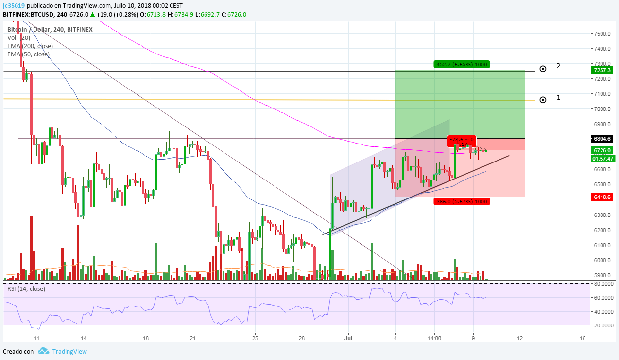 - Seguimos en la espera del movimiento planteado en el post pasado, que es el rompimiento del los $6800 para buscar los targuet mencionados.