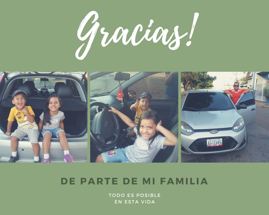 Gracias a steemit y muy especialmente al proyecto @cervantes he logrado alcanzar uno de los sueños que parecía casi inalcanzable... He podido comprarme un automóvil para mí y mi familia. Esto ha cambiado mi vida y la de mi familia de forma espectacular. No tengo palabras para expresar la emoción y felicidad que inunda mi ser a ver a mis hijos disfrutar de esta bendición.