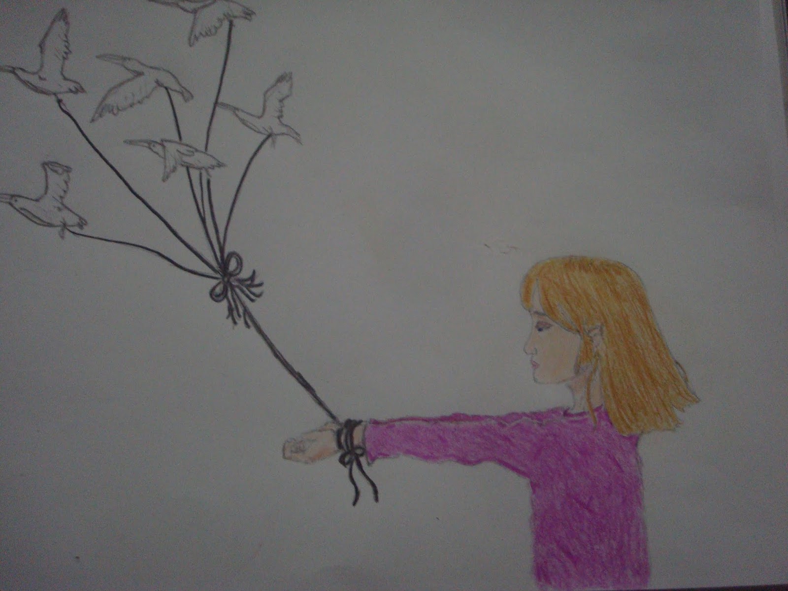 este dibujo se me vino a la mente, después de ver una parvada de pájaros volar sobre mi casa (Bueno pericos)