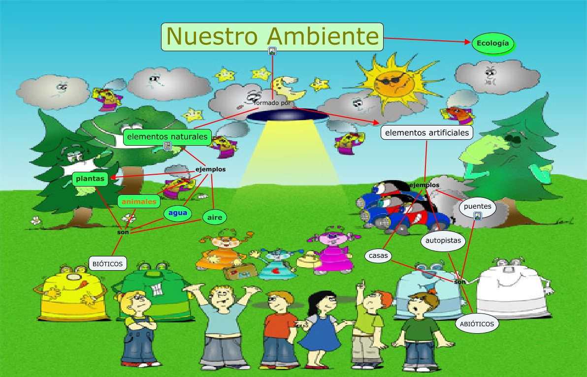 Existen numerosos elementos que conforman el Ambiente, entre los que podemos nombrar: Animales, seres humanos, suelo, agua, aire, flora.