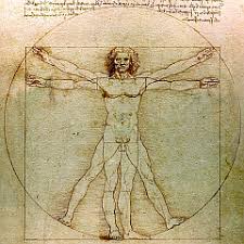Proporciones que Leonardo Da Vinci plasmo en "El Hombre Ideal", también conocido como “El Hombre de Vitruvio”, considerado un ideal de belleza y cuyo cociente entre el lado del cuadrado y el radio de la circunferencia tiene por centro el ombligo, siendo éste el número de oro.