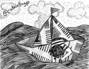 Los primeros minutos transcurrieron tranquilamente con la esperanza de llegar a alta mar para las redes lanzar, pero antes de que al destino pudieran llegar el pobre de la baranda de babor no se pudo despegar, se sintió mareado y comenzó a vomitar, se puso tan pálido que un fanasma parecía, y estaba muy ansioso por terminar su travesía.