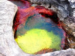 Caño cristales nace al sur de la Sierra de la Macarena y corre hacia el oriente para finalmente desaparecer en el río Guayabero en su cauce encontramos colores: amarillo, azul, verde, negro y rojo que son producidos por la presencia de abundantes algas en él y que según la época del año se intensifican hacía uno u otro color. Es una sucesión de rápidos, cascadas, correones y pocetas. La aguas son de tal pureza que permiten ver el fondo carece de peces por las características predominantes en su lecho.
