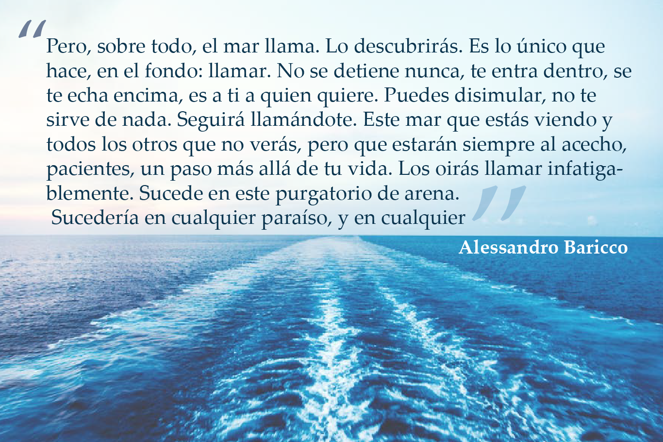 Alessandro Baricco es un autor que levanta roncha a las clases del «nuevo orden mundial», su estilo es único y su relación con el mar la dejó inmortalizada a través de esas citas..!