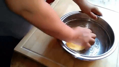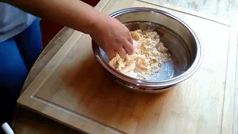 Cuando ya no puedas seguir con la cuchara, empieza a amasar usando la mano