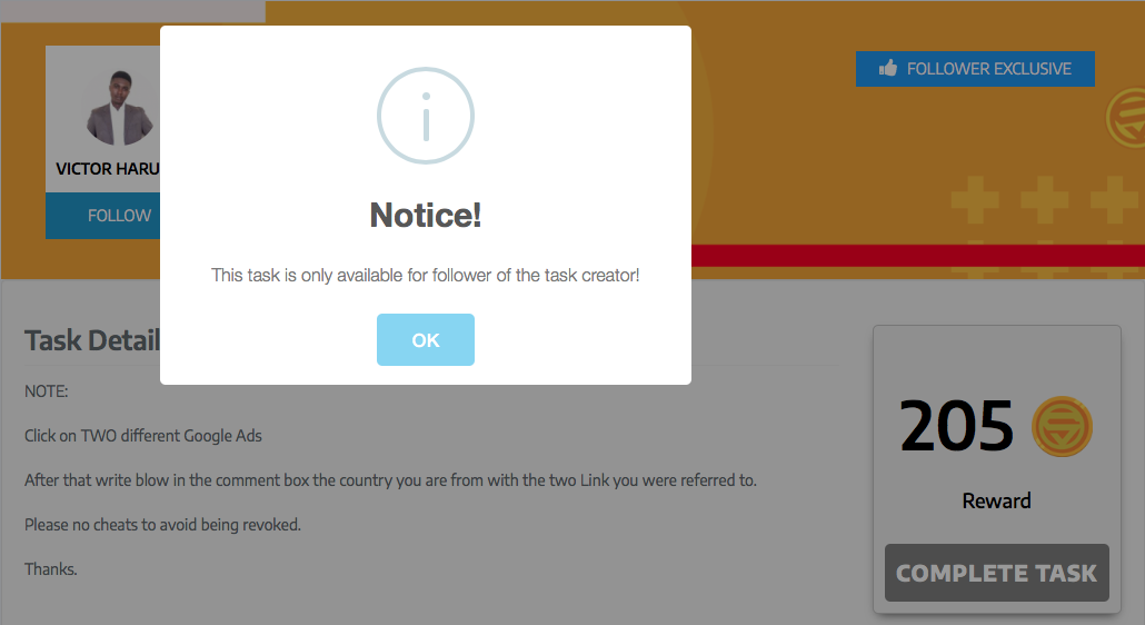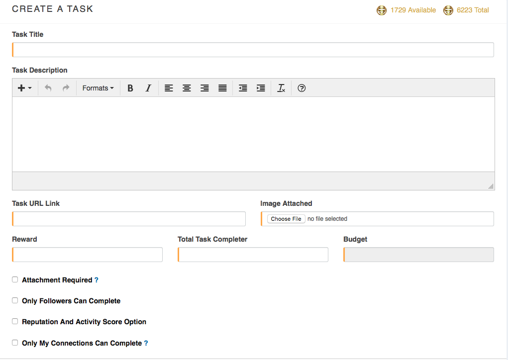 9 Only Followers Can Complete = Caja de selección si deseas que solo tus Seguidores puedan ejecutar la tarea.