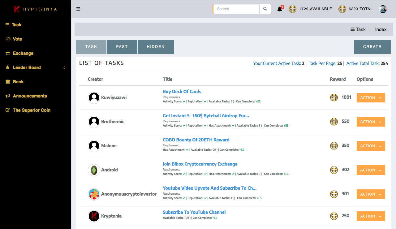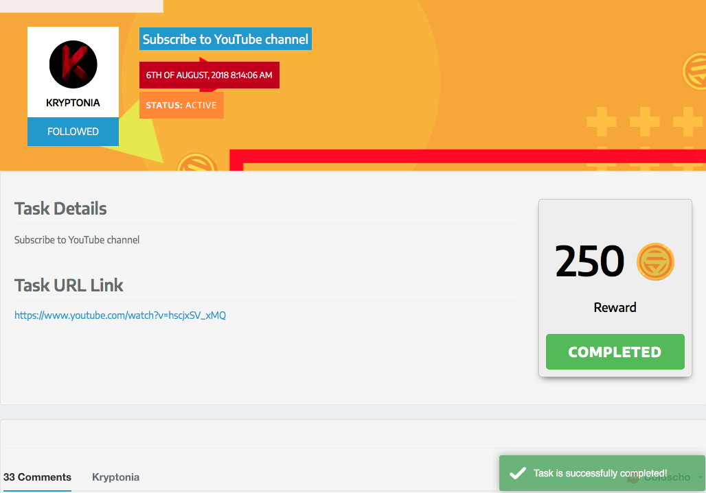 Run a task on Kryptonia.*Join free here Kryptonia Account