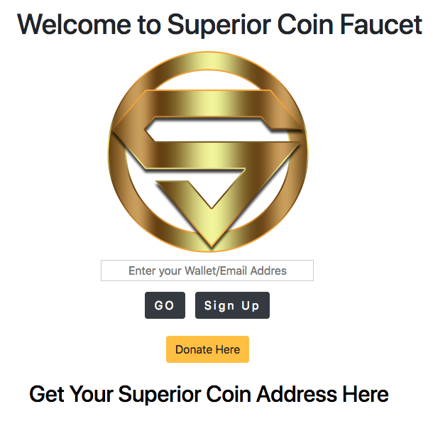 - Es un "llavero" de monedas tal y como su nombre lo especifica. El Faucet de SuperiorCoin te brinda la posibilidad de recolectar 1 SUP cada 60 sec; Asi es, completamente gratis. Solo tienes que esperar el medidor de tiempo llegue a 0 y la pagina te brindara la opción de reclamar tu recompensa. La Faucet se mantiene a base de un sistema de donación, por el cual usuarios depositan cierta cantidad de SUP a cambio de promocionar un link de su preferencia como Add-On publicitario. También se pueden ejercer donaciones anónimas como aporte al proyecto.