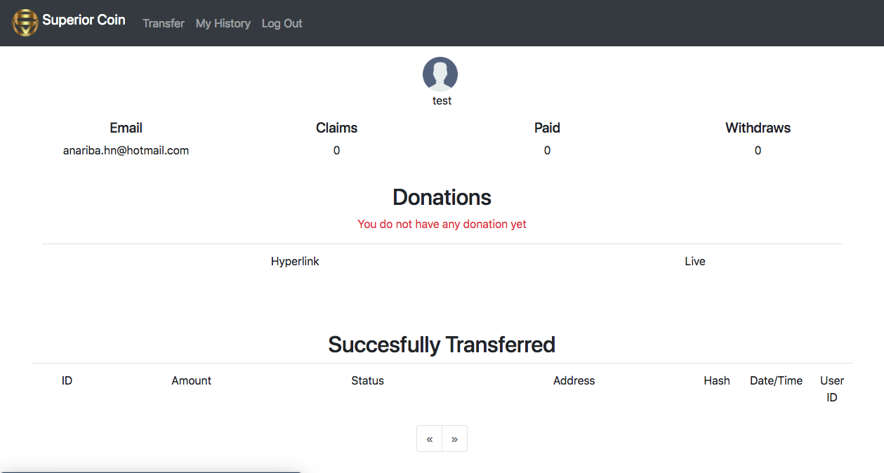 My History sera la sección donde podremos encontrar toda la información acerca de nuestra cuenta tales como: Cantidad de Reclamaciones que hemos efectuado, Cantidad de Pagos o Desbloqueos, Cantidad de Retiros o Transferencias que hemos realizado. También podremos ver la información si hemos efectuado alguna donación al Pool de la Faucet y cuantas impresiones restan a nuestro link promocional, como bien información relacionada a las Transferencias Exitosas como las Transferencias que no se pudieron completar.