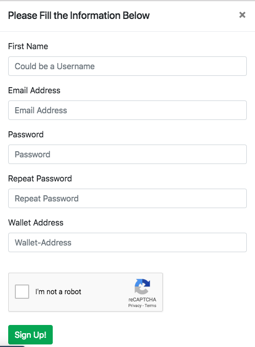 2 Seleccionaremos el botón "Sign Up" y completaremos el formulario con nuestra información. Notase que en el campo Wallet Address Es donde debe ingresar la dirección de su cartera antes explicada, de igual forma podremos dirigirnos desde el Faucet a la pagina donde podremos crear una nueva cartera seleccionando "Get Your SuperiorCoin Address Here".