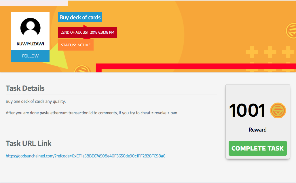 5 Reward = A la cantidad de SUP que se pagara a los usuarios que ejecuten la tarea.