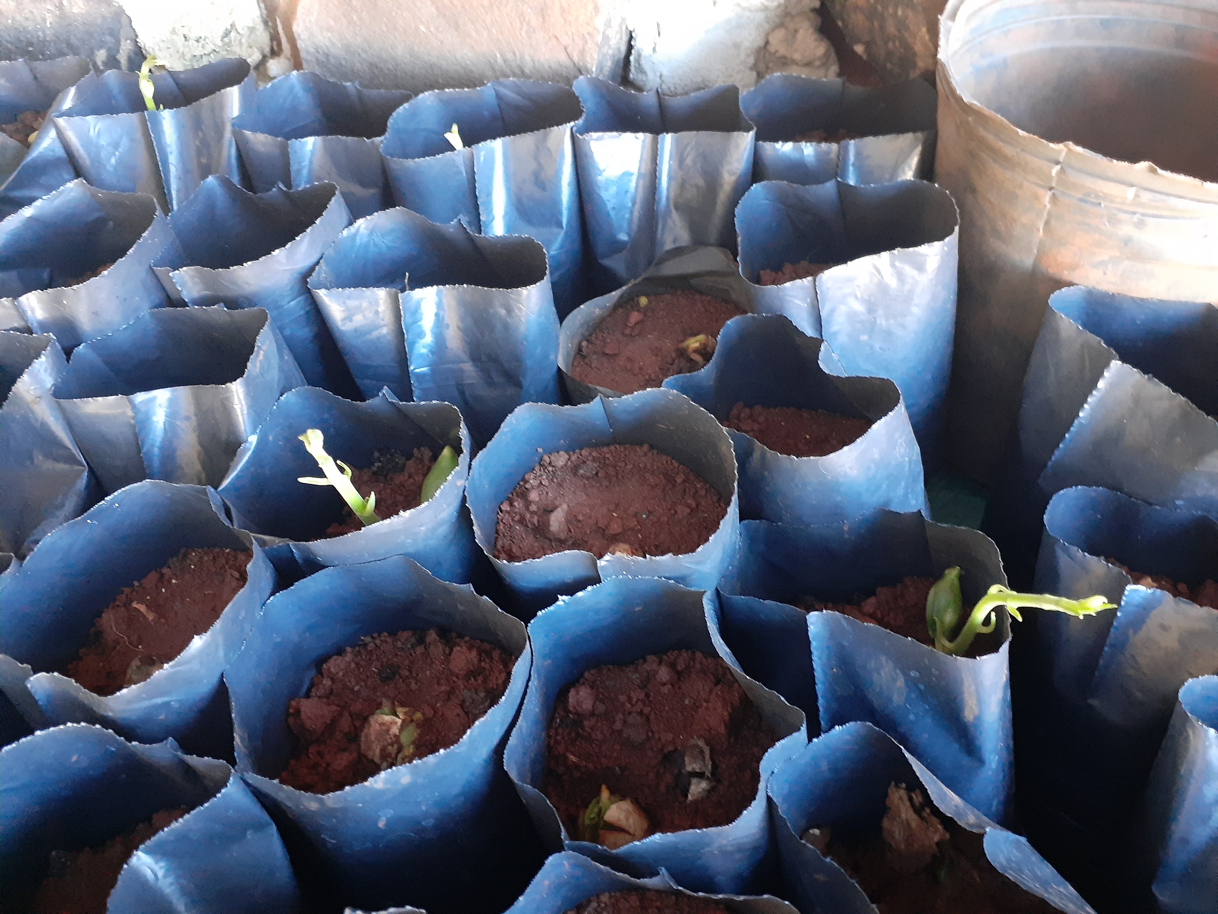 Dichas semillas luego de una semana de tenerlas en la sombra sobre una bandeja, se la coloca sobre la tierra, preparo tierra con compus y fertilizante, mesclo la misma para ir colocando en las bolsitas de germinacion.
