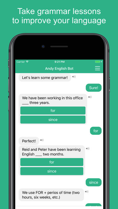 Andy es una app para conversar en ingles con una IA es buena palicacion ya que te corrige si escribes mal. Es una app de pago.