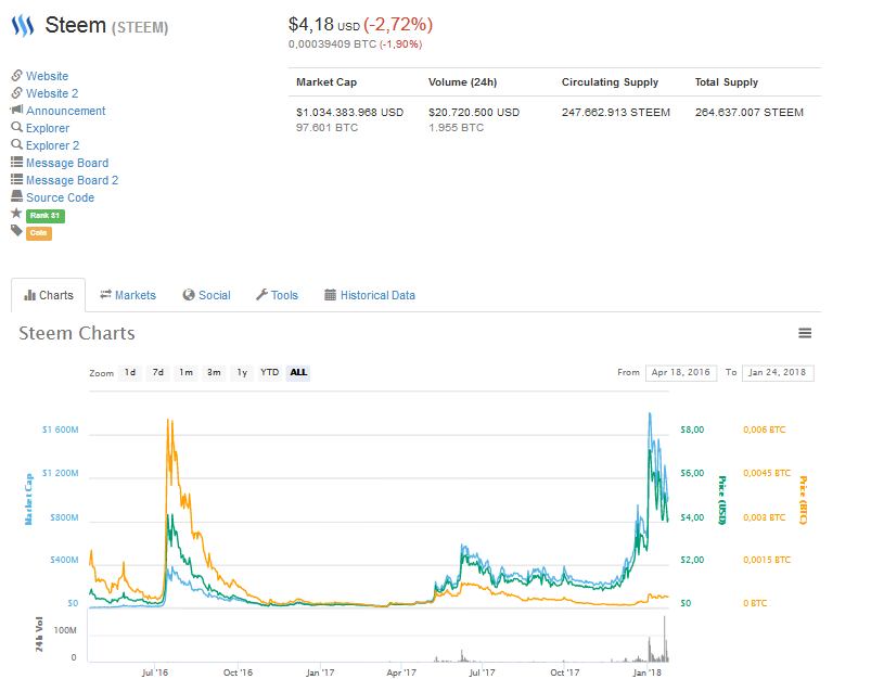 24/01/2018 PRECIO STEEM DOLLAR y STEEM! -EL BLOG PARA INICIANTES Y PEQUEÑOS INVERSORES!criptofuturo (45)in #spanish • 8 years ago Bueno amigos vamos a iniciar un seguimiento de estas 2 monedas fundamentales para nosotros. STEEM DOLLARS: STEEM: TOP 10! #steemit #bitcoin #criptomonedas #cryptocurrency