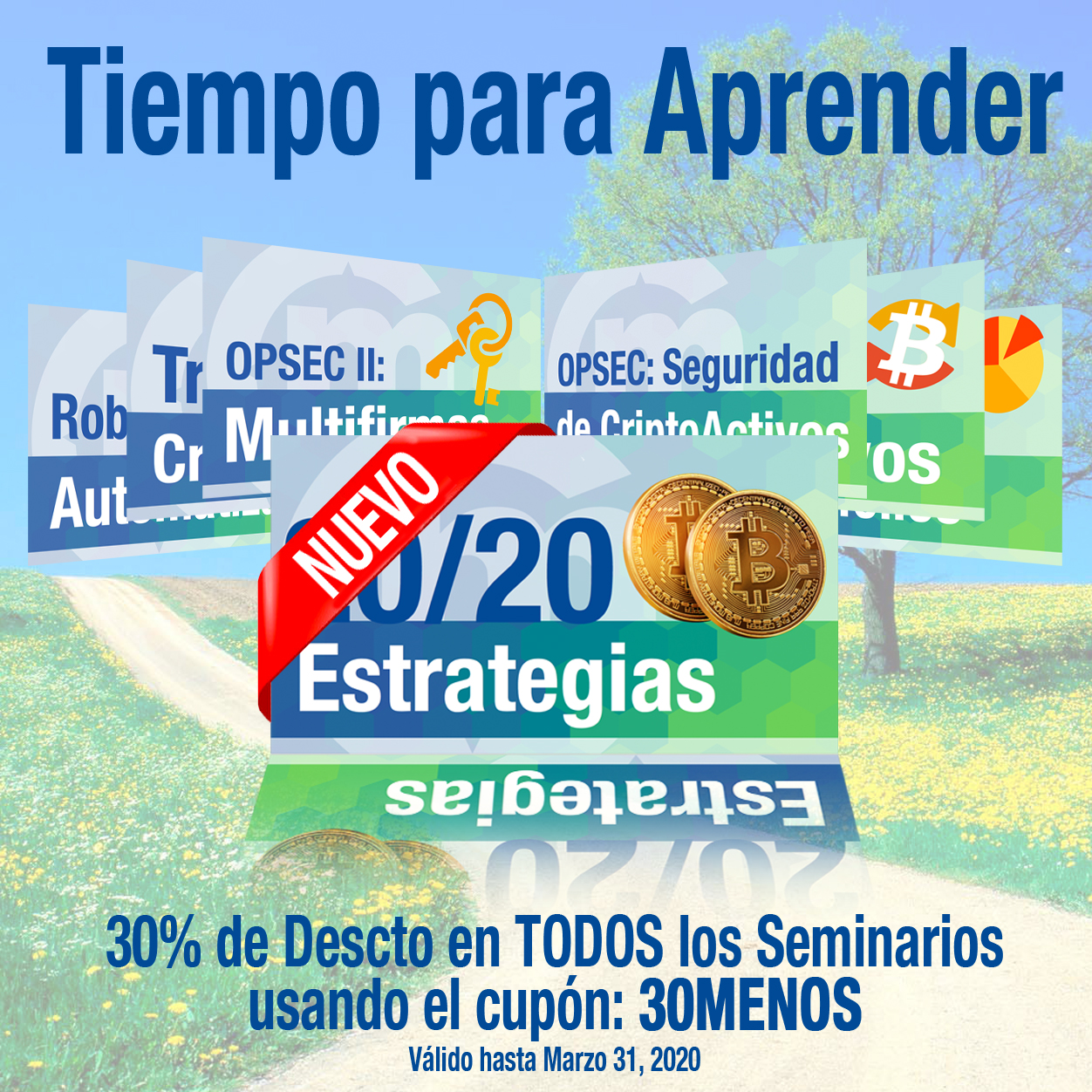 Descuento del 30% en todos los Seminarios. Usa el cupón 30MENOS. Válido hasta Marzo 31, 2020. http://criptomonedastv.com/tienda