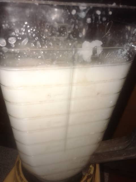 Ahora le colocamos leche, puede ser liquida o en polvo, azucar, tambien se puede agregar vainilla o canela, depende del gusto de cada quien, y se licua aproximadamente unos dos minutos.