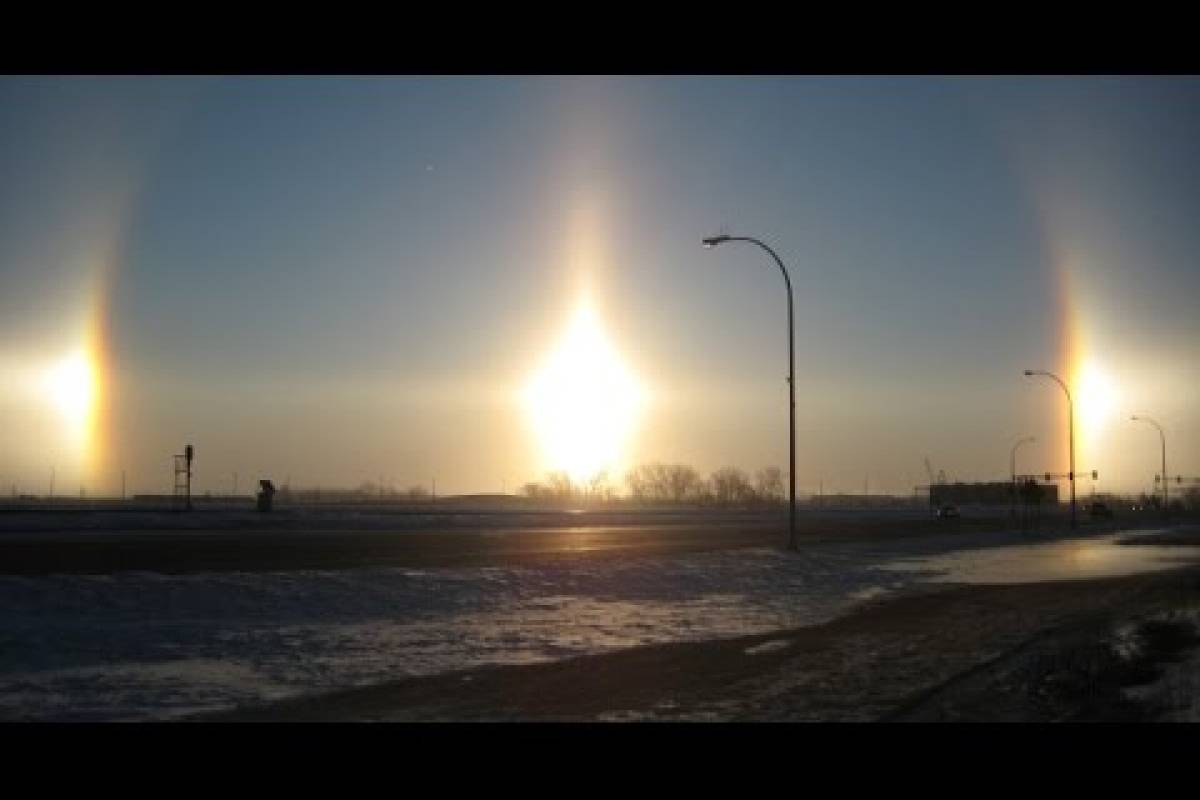 Esta extraña ilusión celestial es llamada "PARHELIO" un extraño fenómeno óptico que se da con la refracción de la luz en las partículas de hielo y nubes. Se formó bajo condiciones muy complicadas de atmósfera y nubes y duró alrededor de15 minutos.
