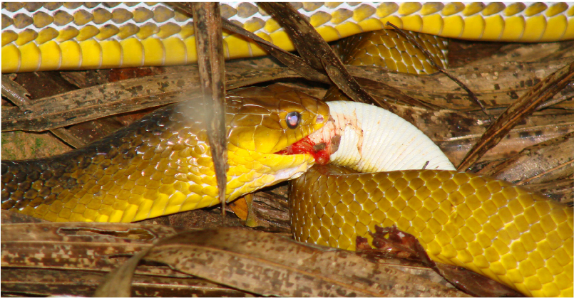 Esta serpiente es muy peligrosa, si la molestas te puede atcar es muy agresiva, es como una serpiente llamada la tigra, son demaciado agresivas y mortales a la vez. Exelente post.