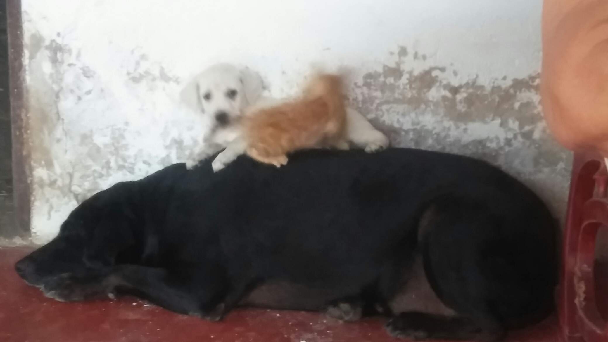 ( a veces creo que ruffus le tiene miedo al piso rojo. le gusta dormir encima de zeus😀)