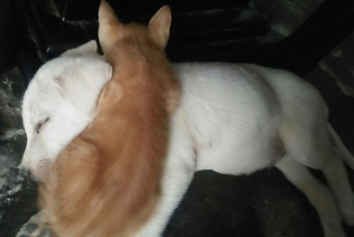 Ellos son kiryku y ruffus. A ruffus lo encontro un amigo de la familia en un vertedero de basura al parecer algo se le estaba comiendo su colita. Y el pequeño kiryku se hizo amigo de el instantaneamente ( basicamente no lo dejaba en paz) jejejeje