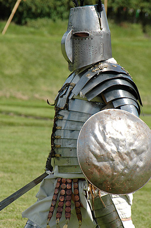 Luchaban con armadura completa, espada y una maza.
