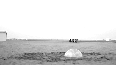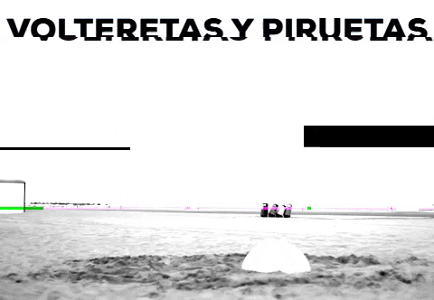 Donde parece estar haciendo alguna danza de la lluvia jajaja, y donde la pelota parece una pequeña luna enterrada en la arena.