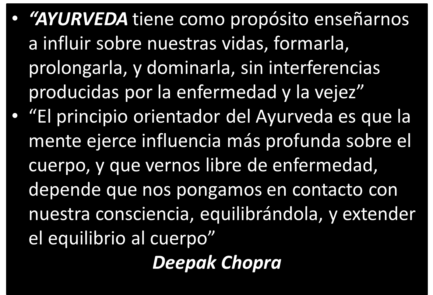 - El CHMC, el cuerpo vibracional, hay que aprender a captarlo a través de la consciencia, de la meditación. El Ayurveda actúa a este nivel, produciendo cambios sutiles que exceden ampliamente a la medicina convencional. Es necesario para la salud perfecta dar este salto cuántico.