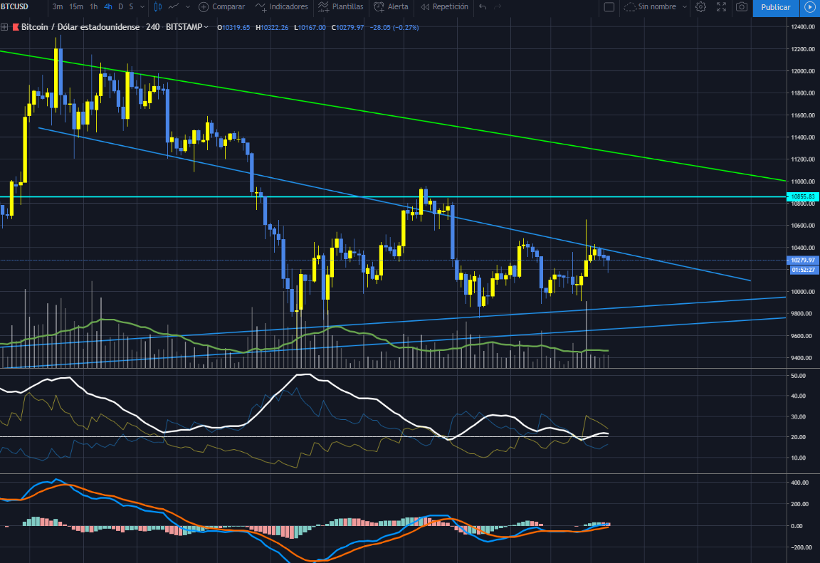 Gráfica a 4H del Bitcoin contra dólar