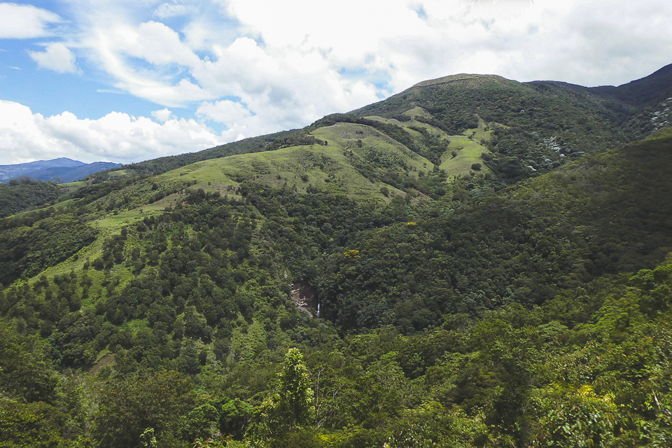 La montaña cubierta del verde andino se hace bastante llamativa desde la ciudad, por lo que varios amigos y yo decidimos ir de expedición. Habíamos visitado la montaña de Guarín anteriormente y teníamos pendiente hacer una ruta de exploración hasta una de las cascadas que se ven desde el camino.