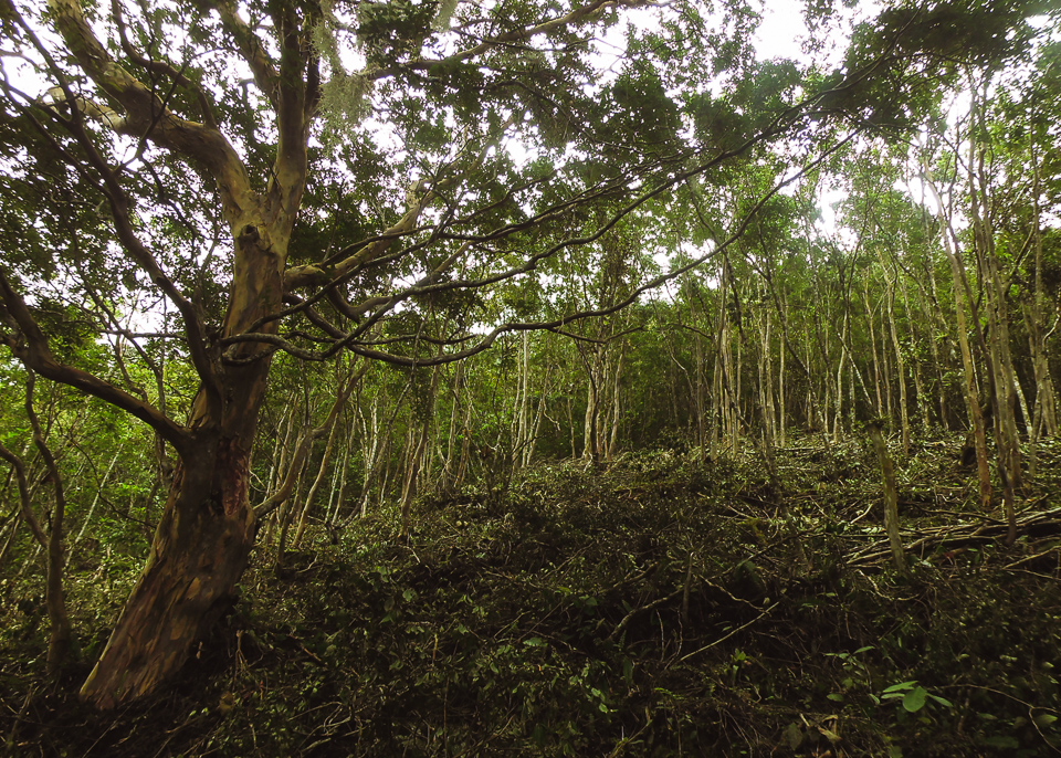 A pesar de todo esto no dimos paso atrás, queríamos tan decididamente llegar hasta la cascada que nos lanzarnos montaña abajo entre la maleza por un sendero muy accidentado que íbamos abriendo conforme avanzábamos, con la intensión de llegar directamente a la quebrada. No fue una buena idea, el camino se desmoronaba al paso soltando piedras grandes que rodaban por la montaña; parecía que la única forma de avanzar era siguiendo el ejemplo de las rocas y deslizarse selva abajo esperando lo mejor. No dimos marcha atrás. Continuamos por este tramo un rato hasta encontrar un peñasco ineludible de un poco más de tres metros de altura justo en la falda de la montaña.