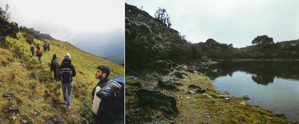 En la noche el frío fue inclemente. Logré dormir a ratos pero el frío siempre conseguía despertarme de nuevo, a pesar de eso si descansamos algo. Ya en la mañana y con un poco de suerte, la neblina se despejó, la laguna rodeada de matorrales y frailejones se lograba ver.