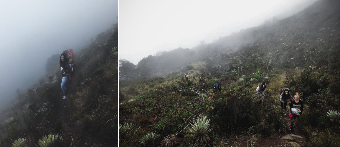 El grupo estaba compuesto por unas doce personas. Unai, ya había visitado el lugar en varias ocasiones por lo que nos guío durante el recorrido. Desde que iniciamos la caminata la neblina opacaba todo alrededor y se hacía más espesa a medida que avanzábamos, se mantuvo así durante todo el trayecto. A pesar de que la neblina dificultaba la visibilidad del sendero logré tomar algunas fotos del ascenso.