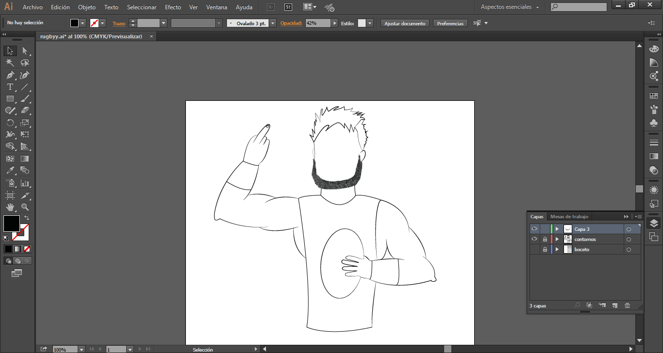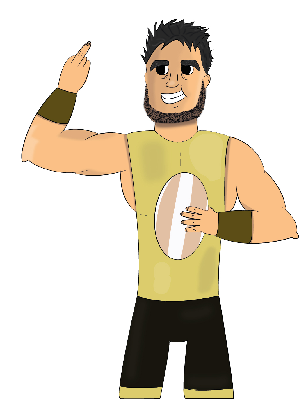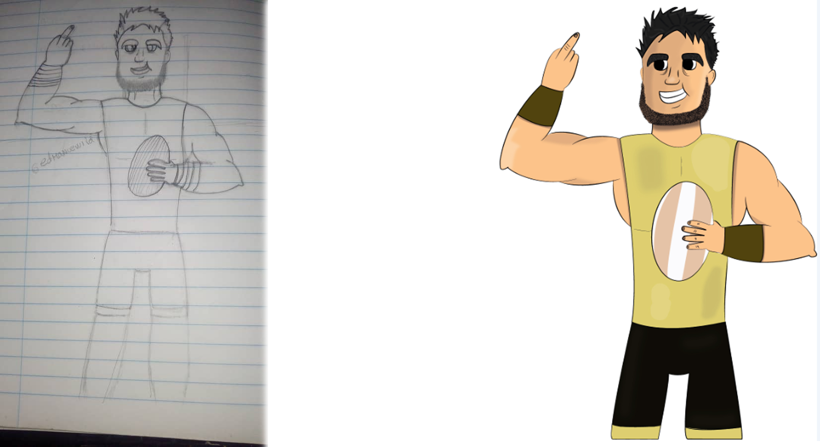 Un martes en la universidad, tenia una practica en el laboratorio, la cual no se pudo llevar a cabo debido a las fallas eléctricas que hay en mi ciudad actualmente (racionamientos de hasta 15 horas c:), para pasar la hora me puse a dibujar algunos garabatos en mi cuaderno, y se me ocurrió hacer una caricatura de un jugador de rugby ficticio.