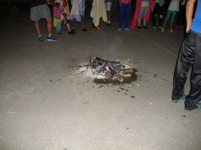 En una de las convivencias con todo el equipo de Cultura, Vida y Deporte en Fe y Alegría Juan XXIII se realizó una actividad que consistia en colocarse frente a una fogata, en la cual simbolicamente quemariamos los momentos o recuerdos que no nos dejan progresar como persona o que han influido mucho en nuestra vida. Todo esto a fin de que todos tuvieramos un nuevo comienzo.
