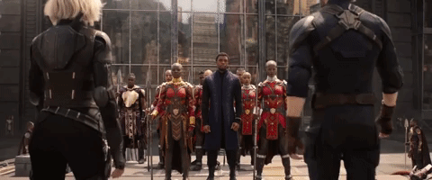 Capitán América, Black Widow y su equipo acuden a Wakanda para solicitar la ayuda de Black Panther, que su propósito se limita solo al combate contra secuaces de Thanos./Gif extraído de Giphy