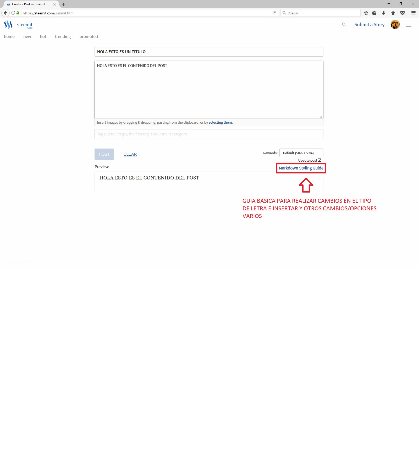 Elegimos un titulo que nos parezca adecuado para nuestro post