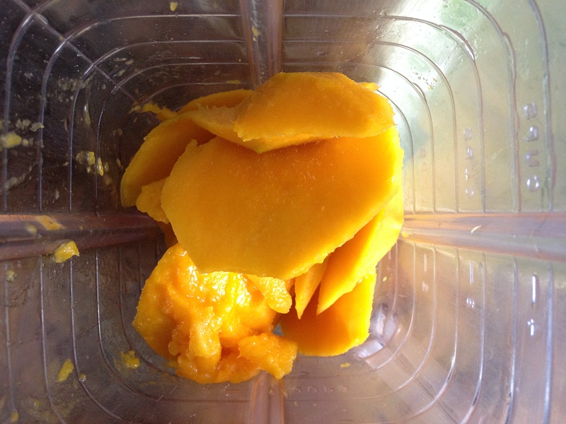 Pelamos los mangos y le quitamos la pulpa dejando solo la semilla, luego licuamos con un poco de agua y lo colamos, este sera nuestro concentrado de mango y la base de la mezcla.